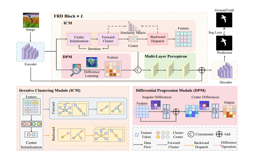 FRD-Net explicitly mines and amplifies the intrinsic inconsistencies between tampered and authentic areas in a task-driven manner. By jointly modeling discrepancies at both macro and micro levels, the approach transforms manipulation localization from traditional “anomaly feature detection” into a more principled “real–fake discrepancy comparison,” enabling precise localization and strong robustness across diverse manipulation scenarios.To implement this idea, FRD-Net introduces an efficient and lightweight Focus Region Discrepancy Block (FRD Block), which consists of two key components:Iterative Clustering Module (ICM):This module dynamically clusters feature representations to form two adaptive cluster centers corresponding to “suspicious regions” and “authentic background”.Through iterative updates, the semantic separation between these centers is progressively enhanced, allowing the model to automatically emphasize object-level macro discrepancies in the high-dimensional feature space.Differential Progressive Module (DPM):Operating at the local level, DPM incorporates angular and central differential convolutions to progressively amplify fine-grained artifacts—such as texture discontinuities and broken edges—thereby capturing micro-structural inconsistencies with high precision.The macro-level ICM provides global semantic priors for the micro-level DPM, while the DPM in turn refines region boundaries, forming a tightly coupled discrepancy amplification mechanism.Extensive experiments on multiple publicly available image manipulation localization benchmarks demonstrate that FRD-Net significantly outperforms mainstream methods in accuracy, boundary quality and robustness, while maintaining a lightweight architecture and low computational cost. This highlights its strong potential for real-world deployment. The proposed framework introduces a new discrepancy modeling paradigm for image manipulation localization and offers fresh insights for multimedia forensics by emphasizing the exploitation of intrinsic inconsistencies between authentic and manipulated regions.