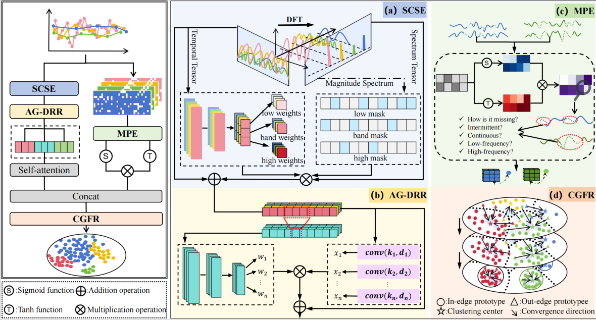 Building on this theoretical insight, the paper proposes SPECTRA, a framework that redefines irregular time series classification through the lens of missingness–imbalance coupling, aiming to achieve interpretable, generalizable and robust representations.Under a unified task-driven design, SPECTRA introduces three synergistic modules:Missingness-Aware Frequency Filtering(MAFF)Module– Corrects spectral leakage and frequency distortion induced by missingness, restoring multi-scale temporal dependencies;Missingness Pattern Encoder(MPE)Module– Explicitly encodes continuous and intermittent missingness and their temporal structures, treating missingness itself as a discriminative prior within the high-dimensional embedding space;Category-Guided Feature Refinement (CGFR)Module – Based on information geometry, enforces intra-class manifold alignment and enlarges inter-class boundaries, enabling stable discrimination even under extreme imbalance.Extensive experiments on multiple irregular time series benchmarks demonstrate that SPECTRA substantially outperforms state-of-the-art models and maintains strong robustness under high missingness rates, severe imbalance, and sensor failures. These results highlight a new paradigm for time series classification driven by structured missingness modeling.