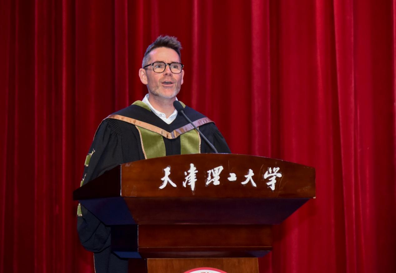 Distinguished guests in attendance included Lian Jijian, Deputy Secretary of the Party Committee of the University and President of the University; Ye Ning and Wang Tie, Members of the Standing Committee of the CPC TUT Committee and Vice Presidents of the University; Dr. Airini, President-Designate of Thompson Rivers University (Canada); Étienne Hébert, Vice President of Université du Québec à Chicoutimi (Canada); and Kazuhiko Ogawa, President of Osaka Sangyo University (Japan).