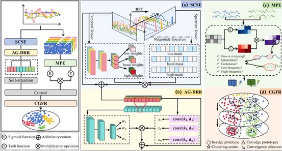 Building on this theoretical insight, the paper proposes SPECTRA, a framework that redefines irregular time series classification through the lens of missingness–imbalance coupling, aiming to achieve interpretable, generalizable, and robust representations. Under a unified task-driven design, SPECTRA introduces three synergistic modules: Missingness-Aware Frequency Filtering (MAFF) Module– Corrects spectral leakage and frequency distortion induced by missingness, restoring multi-scale temporal dependencies; Missingness Pattern Encoder (MPE) Module – Explicitly encodes continuous and intermittent missingness and their temporal structures, treating missingness itself as a discriminative prior within the high-dimensional embedding space; Category-Guided Feature Refinement (CGFR) Module – Based on information geometry, enforces intra-class manifold alignment and enlarges inter-class boundaries, enabling stable discrimination even under extreme imbalance. Extensive experiments on multiple irregular time series benchmarks demonstrate that SPECTRA substantially outperforms state-of-the-art models and maintains strong robustness under high missingness rates, severe imbalance, and sensor failures. These results highlight a new paradigm for time series classification driven by structured missingness modeling.