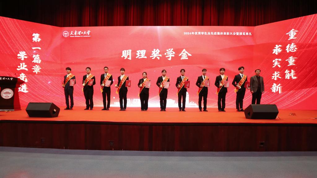 Lian Jijian, deputy secretary of the university Party committee and President, presented awards to representatives of recipients of the Tianjin Municipal Government Scholarship, the Tianjin Wang Kechang Scholarship, the Tianjin Haihe Self-Reliance Scholarship, the Tianjin Self-Confidentand Self-Relying Man of the Year, and the Tianjin University Student of the Year Nominee Award.