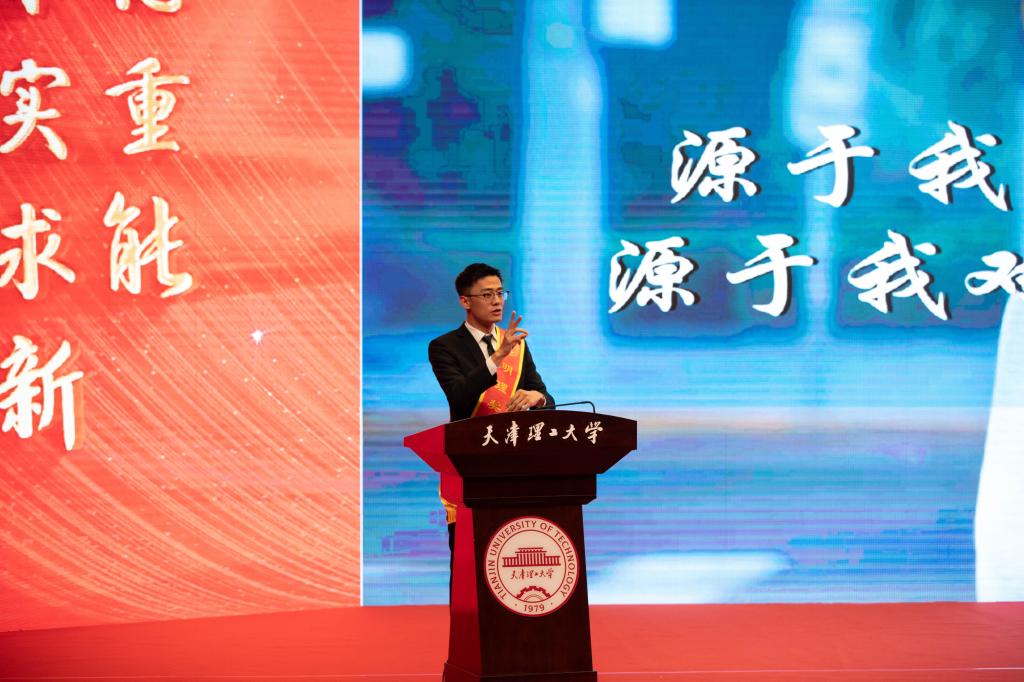 Wang Junyi, gold prize winning team leader of the "Challenge Cup" competition and a student from the College of Environmental Science and Safety Engineering, shared an inspiring story of how his team worked tirelessly to win the gold medal in the national competition. He hoped that every TUT student would realize their personal value through boundless exploration and challenges, thereby shouldering the responsibility of youth.
